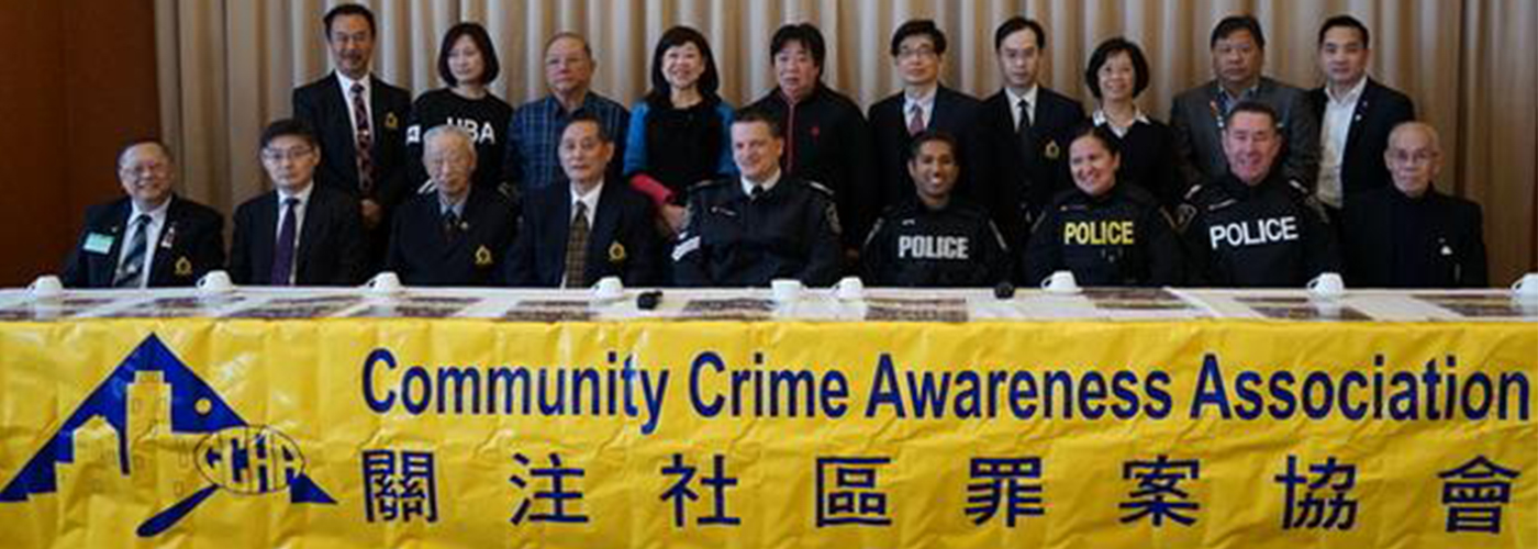 The Community Crime Awareness Association (CCAA) is a non-profit volunteer organization formed by members of Greater Toronto Area Chinese community in 1997. The organization is dedicated to promoting Crime Awareness and Crime Prevention, ultimately making the community a safe place to live and to conduct business.